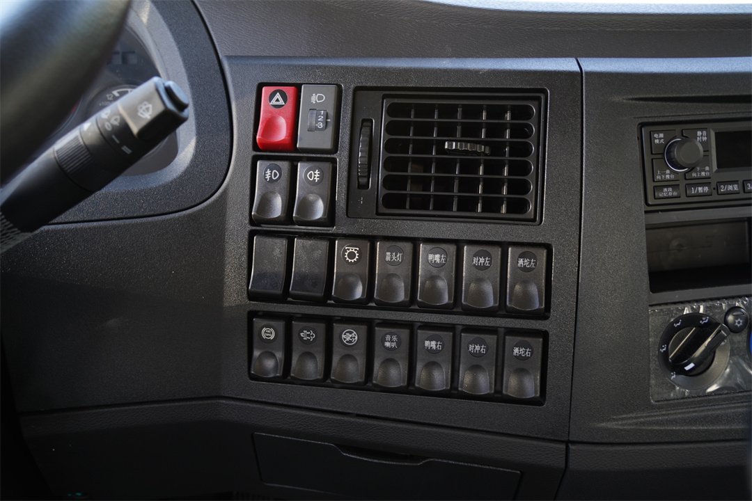 工欲善其事,必先利其器。整车采用底盘+上装一体化集成设计,左右对冲、前鸭嘴、后洒坨标配6大启动控制开关,全部集成在驾驶室中控台。驾驶室一键启动,节省人力,提升洒水作业效率。相比气控盒设计,中控台集成布局更胜一筹。不仅优化了驾驶空间,而且操作更加简便。喷洒作业时,司机视线不受干扰,行驶安全性大幅提高。