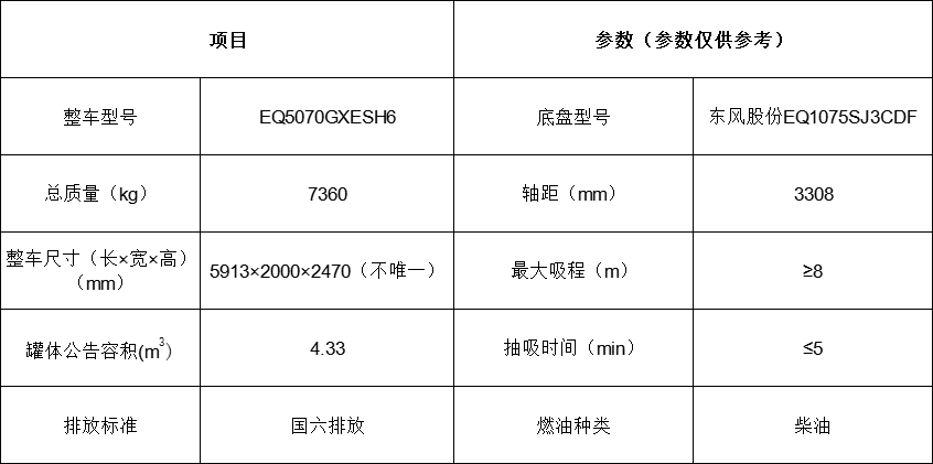 深圳东风EQ5070GXESH6型吸粪车,是深圳东风汽车有限公司新开发的产品。该车型基于东风股份载货车底盘,加装压力罐、真空抽吸系统、气路系统、防溢阀和洗手装置等部件改装而成。该车外观简洁,品质可靠,操作简单,吸力大,吸程远。